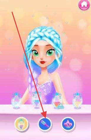 3、完成护理后,按箭头指引点击梳子图标,梳理角色头发(如将头发梳成蓝色辫子),打造心仪发型。