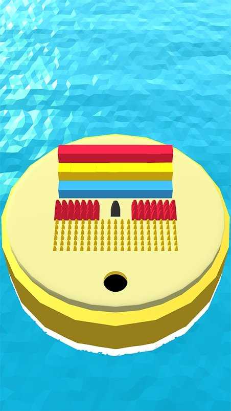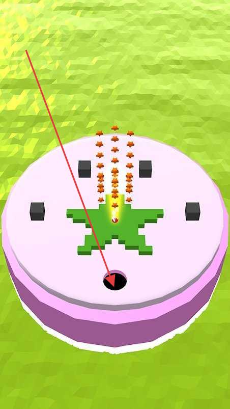 2、在新的关卡场景,依照箭头方向,让黑洞吞噬彩色长条和尖刺等物体,合理规划吞噬顺序,避免碰到陷阱。