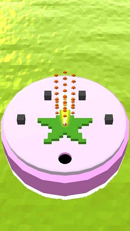 3、进入不同造型平台关卡,按箭头指引,利用黑洞吸收绿色图案及橙色小物体,小心黑色方块,顺利通过关卡。