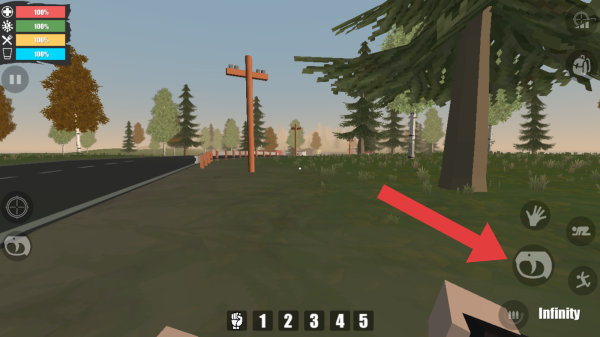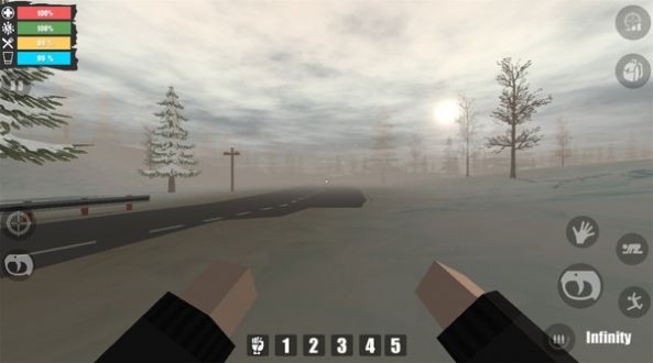 3、以开放世界探索、资源收集、生存状态管理为核心玩法,场景(如道路、森林)支持自由移动,状态条设计强制玩家关注生存需求(如寻找食物、水源)。