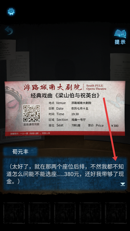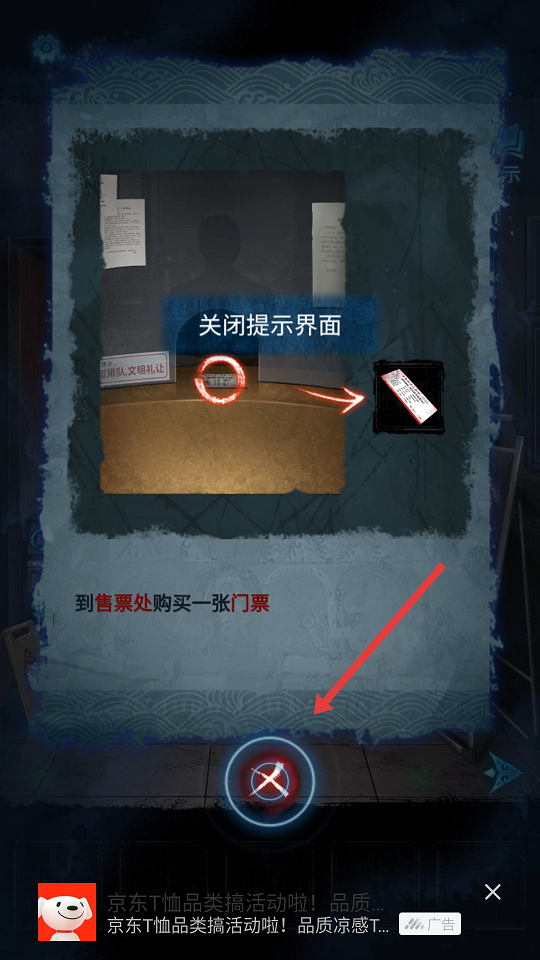 1、了解故事背景,过完剧情按提示操作,先去售票处买张票进场。