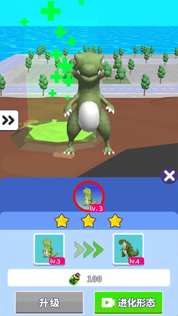2、玩家通过破坏城市积累资源,用于提升恐龙等级,还能让恐龙进化形态,解锁新外观和能力。