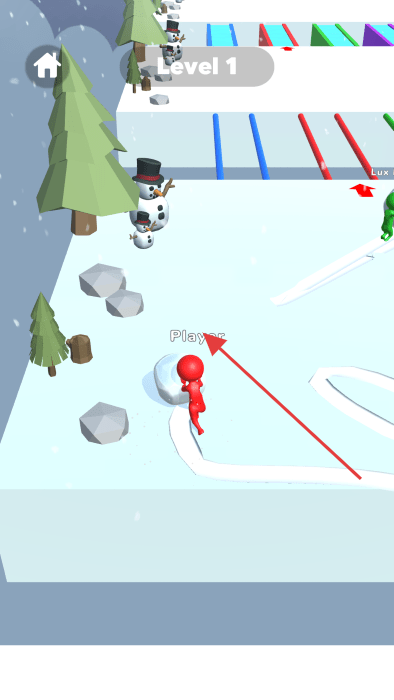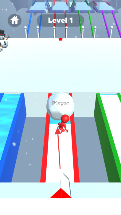 3、寻找对应通道:根据自身颜色,准确找到赛道上对应的颜色通道,推动雪球铺路,确保顺利通过。