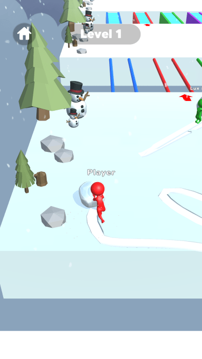 2、玩家推动雪球在赛道上滚动,利用雪球的滚动和碰撞,克服关卡中的障碍。