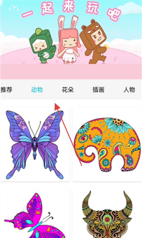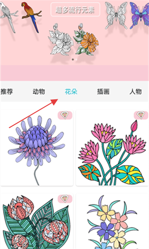 1、进入界面后先浏览主题分类,根据喜好选择花卉星空等类型的图案,点击空白区域查看数字分布再开始填色。