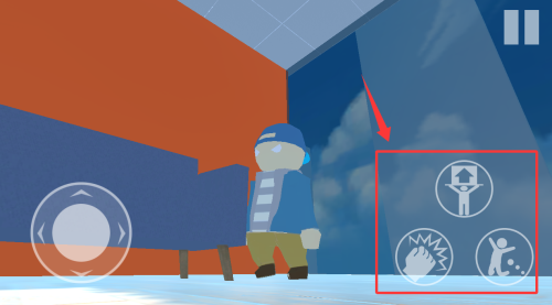 3、右边三个控制键分别是举起,拳头,跳跃。