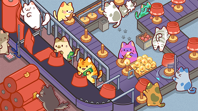 3、猫咪工厂日益壮大,随着更多新成员的加入,工坊愈发热闹,超过50种独特猫咪等待你解锁,让整个经营过程更具互动与探索性。