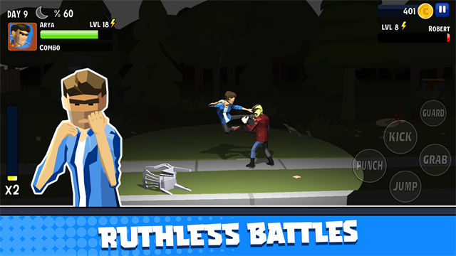 城市战士与街头帮派手机版带你体验热血沸腾的复古格斗,融合空手道、泰拳等多元武术流派。面对凶悍的街头敌人,需灵活运用拳脚连招、格挡闪避等技巧,从迅猛直拳到回旋踢击,每种招式都能打出独特战斗节奏,在混乱巷战中证明你的格斗实力,成为街头最强的战士。