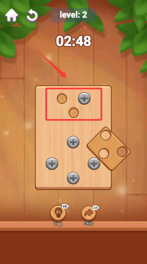 2、点击游戏界面把螺丝拧在没有木板上,木板从螺丝上掉落即可过关。