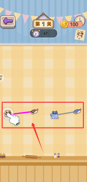 2、通过滑动屏幕操控猫咪移动,在倒计时结束前吃掉指定的寿司。