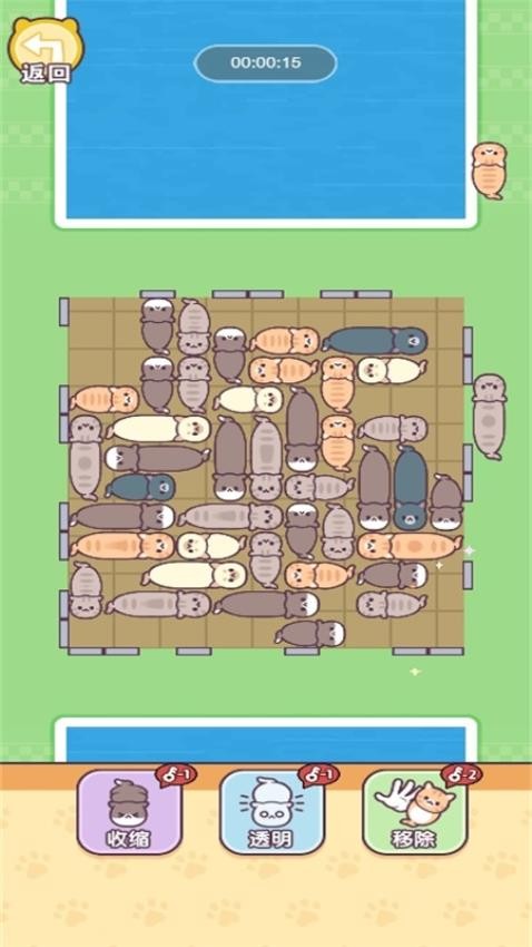 1、创新性猫咪搬运玩法,每只猫咪都有独特的移动特性,胖橘需要宽敞通道,小黑猫能钻过狭窄缝隙,考验玩家的空间规划能力。