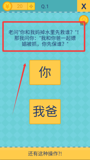 还有这种操作2手机版还有这种操作2在休闲益智游戏领域独树一帜。其充满趣味的风格能迅速抓住玩家的注意力,让玩家沉浸其中。游戏关卡虽有难度,但玩家跳出固定思维后解开谜题的成就感十分满足。独特的“不要相信题目”设定,持续促使玩家跳出常规,极大地锻炼了思维能力。许多关卡答案的反转超出想象,让玩家惊叹不已。并且游戏过程氛围轻松,玩家即便卡关也不会沮丧,始终保持对游戏的好奇与热情,是值得反复体验、持续挑战智力的优质游戏。