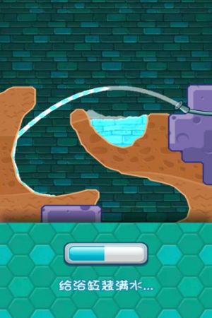1、玩家要帮助小顽皮把水引到浴池,通过挖通土壤引导干净水、脏水、毒水、水蒸汽、泥水通过不同场景,每一滴水都至关重要。
