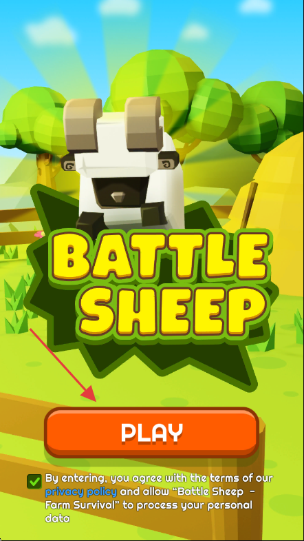1、进入游戏,点击橙色【PLAY】按钮开始游玩【Battle Sheep】,开启农场冒险。