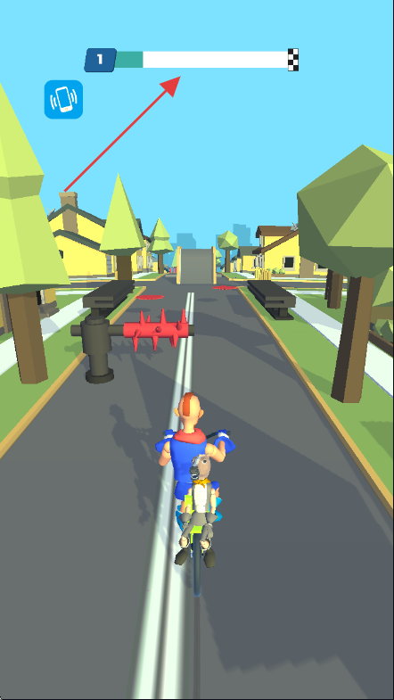 2、骑行中观察上方进度条,朝着终点方向前进,避开红色障碍物,保持角色在道路安全区域。