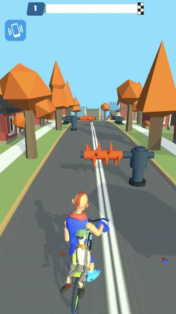 1、现实物理障碍设计:采用基于现实物理的障碍设计,道路上设置栅栏尖刺地雷铁球等多种致命陷阱,玩家需扮演心急的父亲操控自行车,体验贴近现实的跑酷挑战。