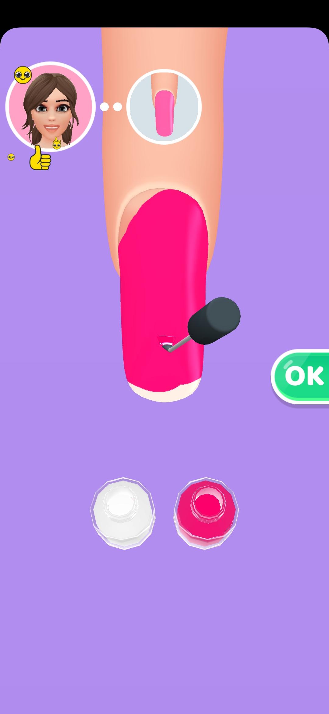 美甲比赛一款将创意设计与实时竞技深度融合的休闲游戏,玩家化身美甲师,根据客户需求设计并完成美甲作品,通过色彩搭配、图案绘制与装饰点缀展现创意,同时与其他玩家比拼评分,争夺排行榜首位,通过解锁超过300种特色工具、收集成就徽章与经营专属美甲沙龙,玩家可逐步提升技能水平,从普通美甲师成长为时尚ICON。