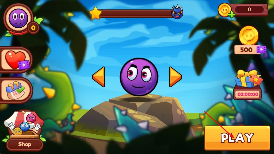 1、打开超级小红球界面点击【PLAY】,在关卡选择页点击首个彩色关卡,轻触屏幕让小红球从起点滚动出发,开启冒险之旅。