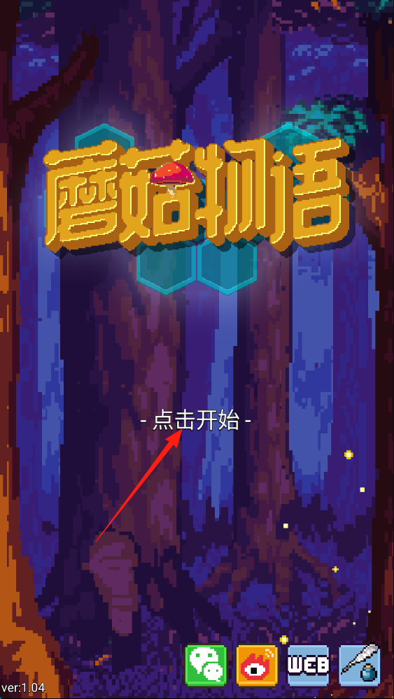 1、打开蘑菇物语,点击“点击开始”按钮,进入游戏世界,开启冒险之旅。