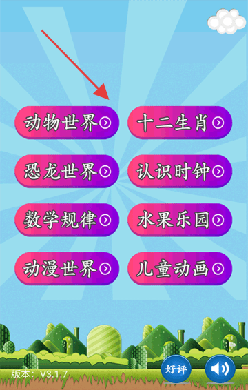 1、初次使用引导孩子点击主界面模块图标,先从“启蒙乐园”的形状颜色认知游戏入手,熟悉点击拖拽等基础操作。