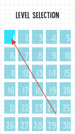 2、在关卡选择界面,按箭头所指点击【1】号关卡,进入游戏挑战环节。