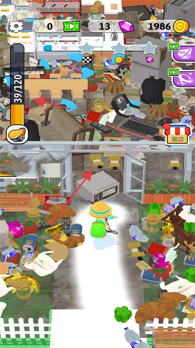 2、玩家在清理过程中收集金币、钻石等资源,同时根据清理进度和表现获得星级评分。