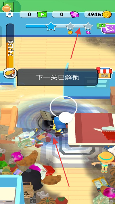 3、玩家成功完成当前关卡,解锁新关卡,不断推进游戏进程,挑战更复杂的清理场景。