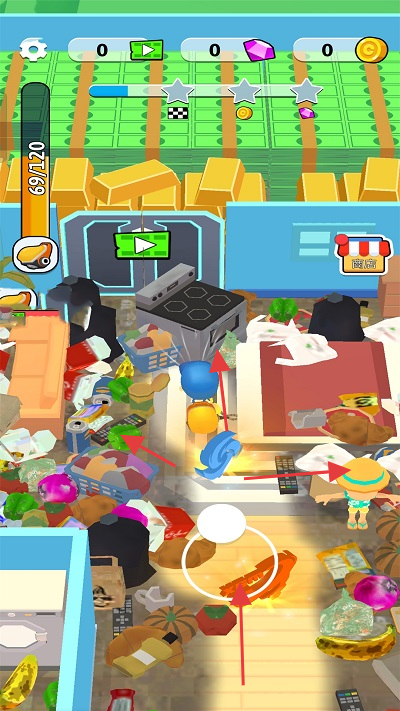 1、游戏设有关卡,玩家操控角色在杂乱场景中清理各类物品,完成关卡规定的清理任务。