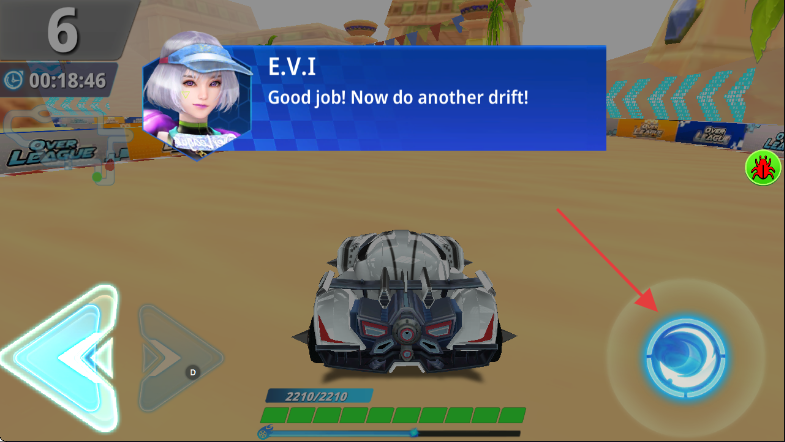 3、根据提示,点击右侧蓝色圆形漂移按钮,进行漂移操作,完成任务,提升游戏表现。