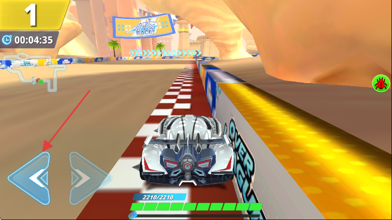 2、在赛道上,利用左侧蓝色左箭头按钮操控赛车方向,沿赛道行驶,避免碰撞。