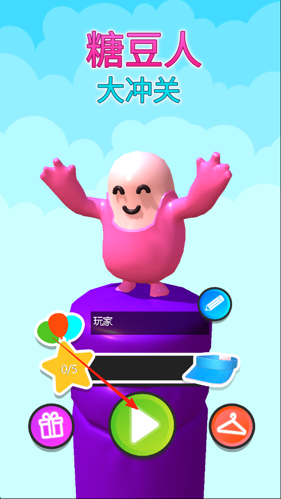 1、进入糖豆人大冲关界面,点击绿色播放按钮,正式开启冲关挑战,与其他玩家竞争。