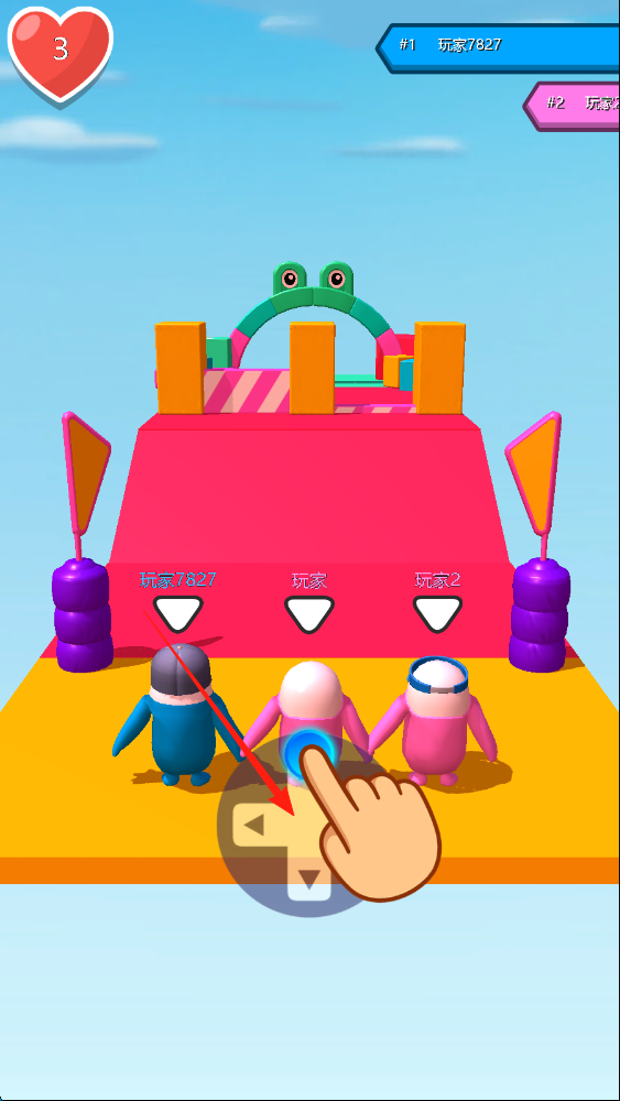 2、在冲关过程中,通过虚拟摇杆控制糖豆人移动,躲避障碍,争取率先到达终点。