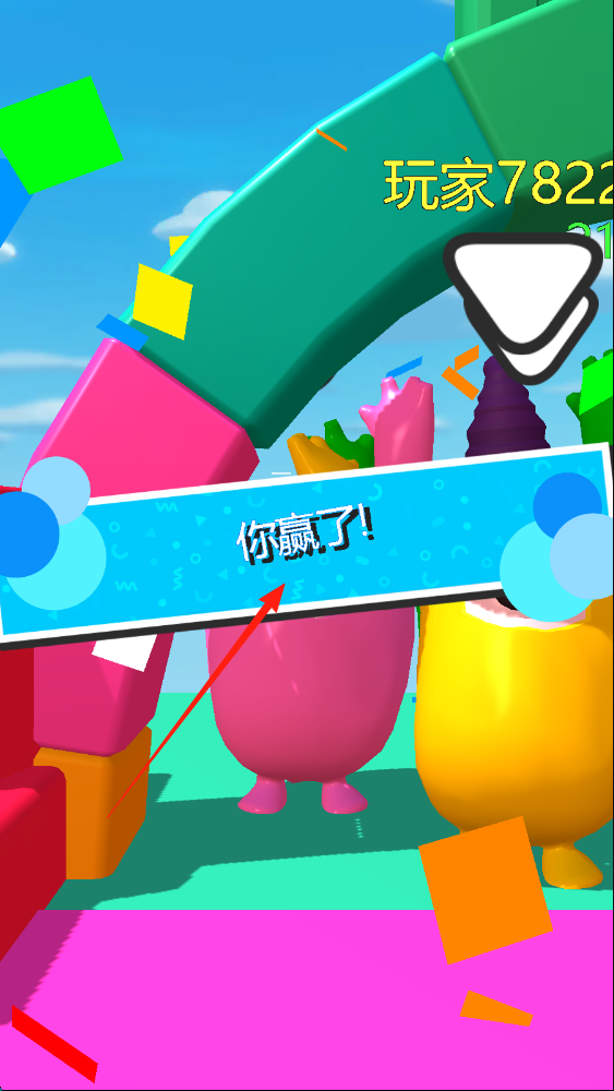 3、成功冲过终点,看到你赢了提示,获得本局胜利,体验竞技成功的乐趣。