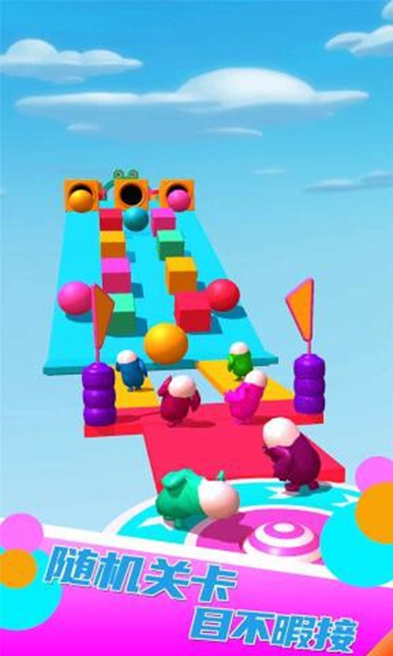 1、关卡障碍突破:在不同关卡中应对各类障碍,如移动平台、旋转齿轮、坠落陷阱等,通过精准走位与跳跃技巧,寻找安全路径向终点冲刺。
