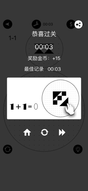 2、进入关卡后,依据关卡目标,利用界面中的图形元素,通过操作达成目标,可借助界面中的功能按钮获取帮助。