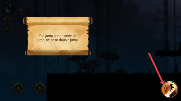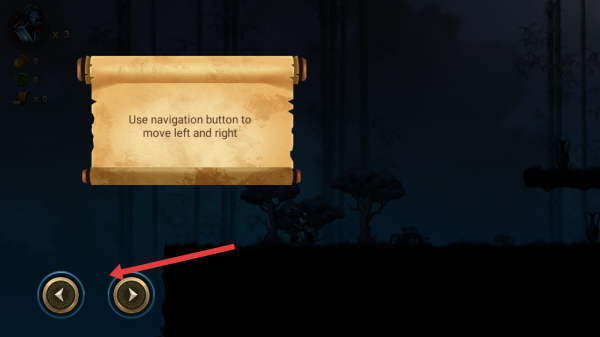 1、在游戏场景中按照提示点击左下角的左右导航按钮,控制角色左右移动。