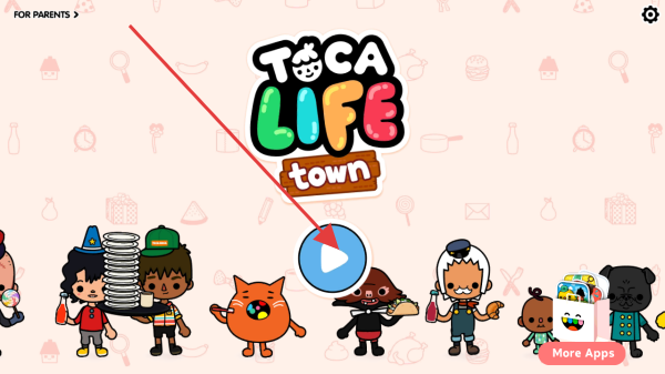 1、打开Toca Life: town,按箭头点击播放按钮,进入充满趣味的卡通游戏世界,开启小镇生活体验。