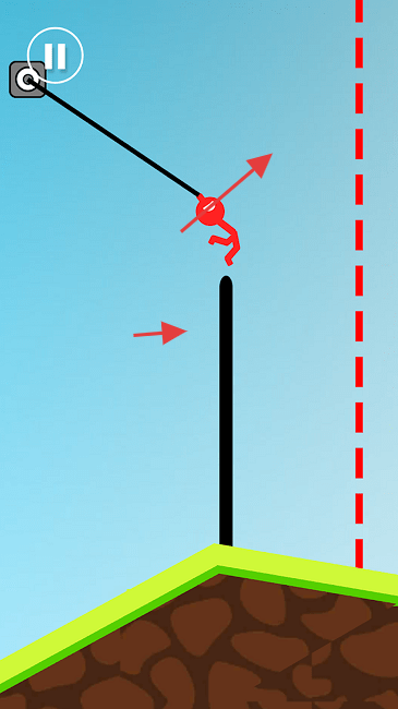 1、节奏掌控玩法:核心玩法围绕绳索摆动,玩家需精准把握节奏,找准最佳时机松开绳索,将火柴人弹射到安全区域。