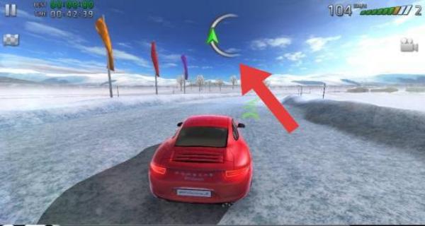 2、驾驶时跟随屏幕上方绿色箭头指示的路线行驶,按箭头方向操控车辆,确保在赛道上正确导航。
