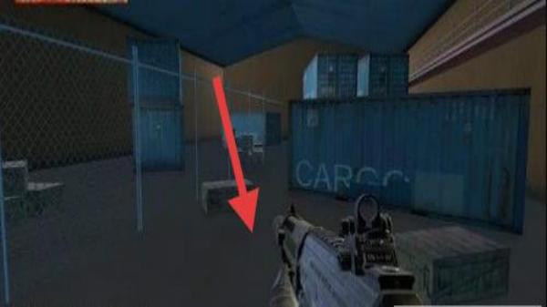 2、进入游戏场景,操控角色持枪前行,在道路、集装箱区域等场景中移动,注意观察周围环境。