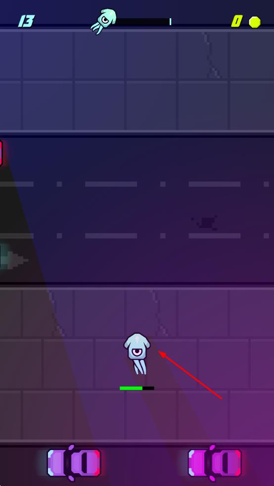 1、初入防暴鱿鱼,小鱿鱼站在赛道起点,滑动屏幕控制其左右移动或跳跃,避开首个障碍物,拾取加速道具开启首次冲刺。