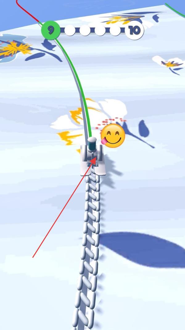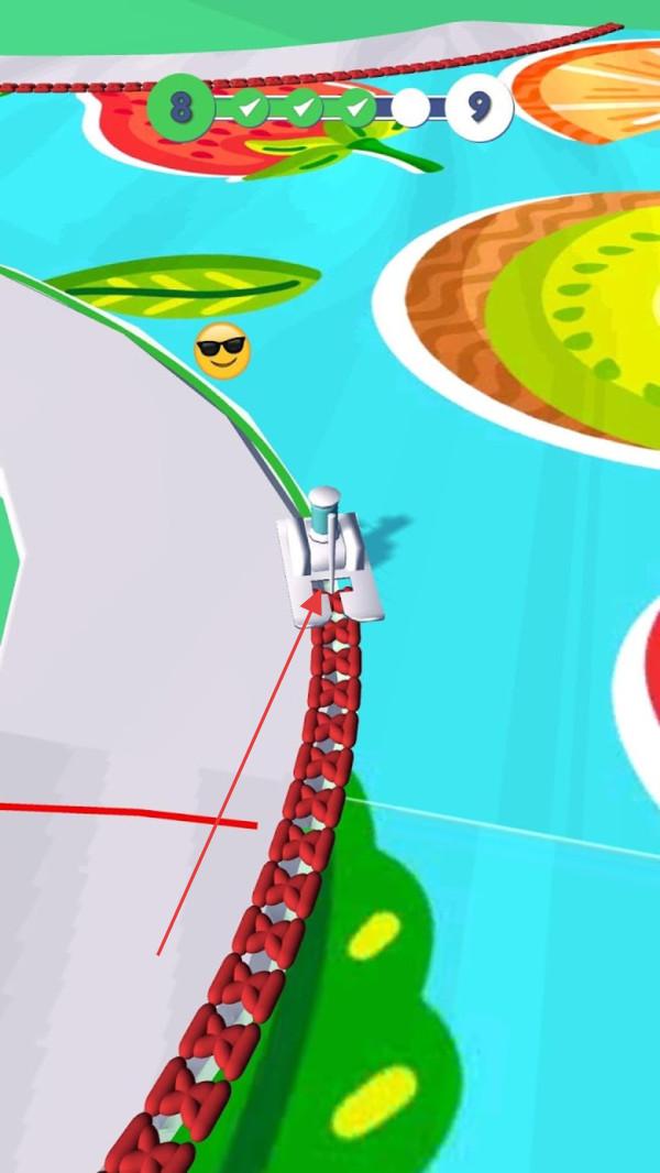 1、在链条关卡中,按照红色箭头方向操控链条装置前进,留意上方进度标识,顺利通过链条路径完成挑战。