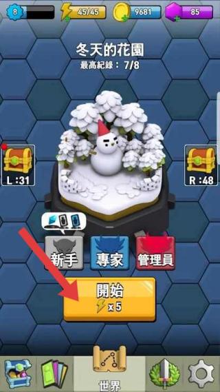 1、在“冬天的花园”关卡界面,点击【開始】按钮,消耗相应资源进入游戏战斗。