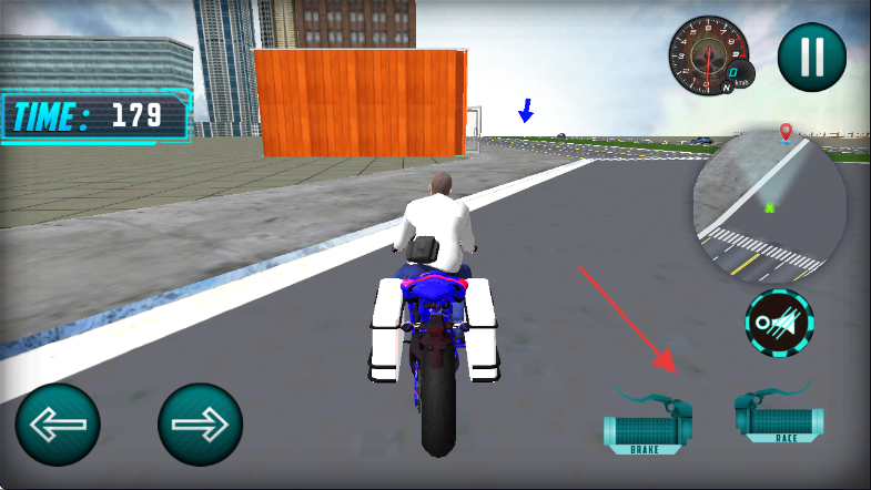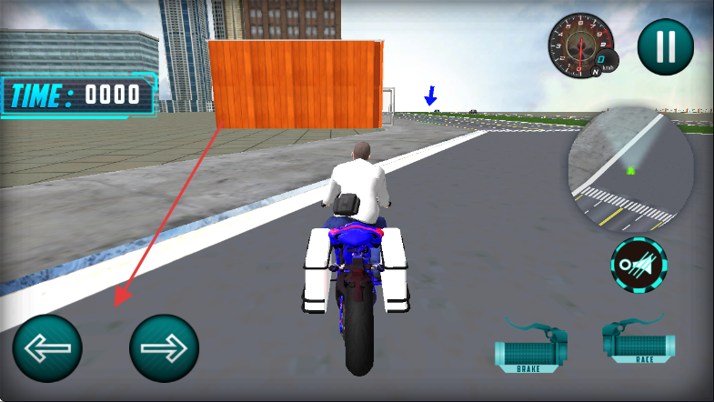 3、当需要减速时,点击右下角的【BRAKE】按钮,控制摩托车的速度,确保安全通过弯道或避免碰撞,顺利完成驾驶任务。