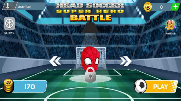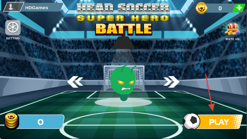 1、点击游戏主界面右下角的【PLAY】按钮,进入足球对战游戏,操控角色开启超级英雄足球。
