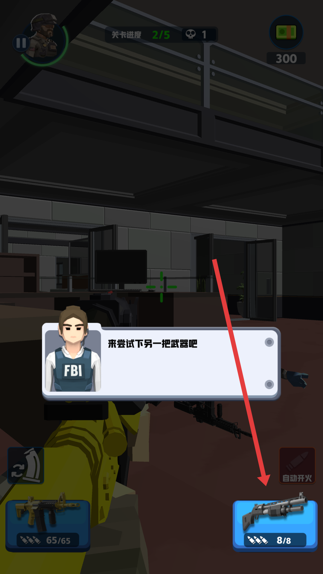 2、按系统提示操作,逐渐熟悉操作,点击右下角的武器换一把枪。