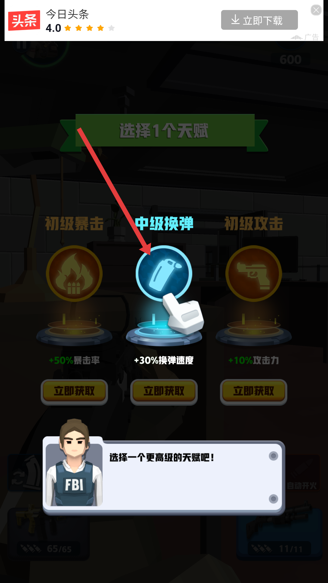 3、打完一把后点击升级各种天赋,增强火力同时还能再关键时刻保命。