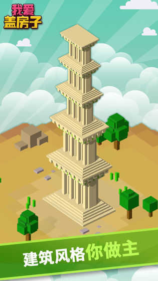 1、简约画风简单操作:采用简约清新的游戏画风,操作方法简单便捷,只需点击屏幕即可完成方块堆积,降低上手门槛,让玩家在轻松氛围中享受盖房乐趣。