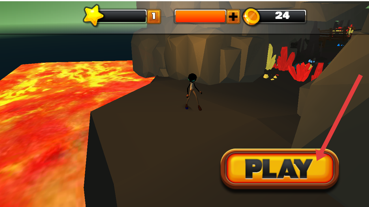 1、进入火柴人洞穴逃离的游戏界面,点击右下角【PLAY】按钮开始游戏,开启冒险之旅。