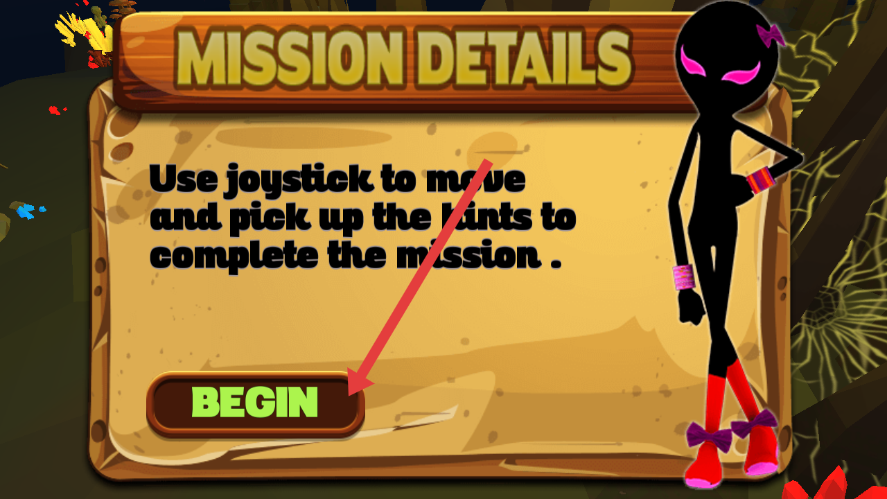 2、在任务详情界面,点击【BEGIN】按钮,按照提示使用摇杆移动并收集线索完成任务。
